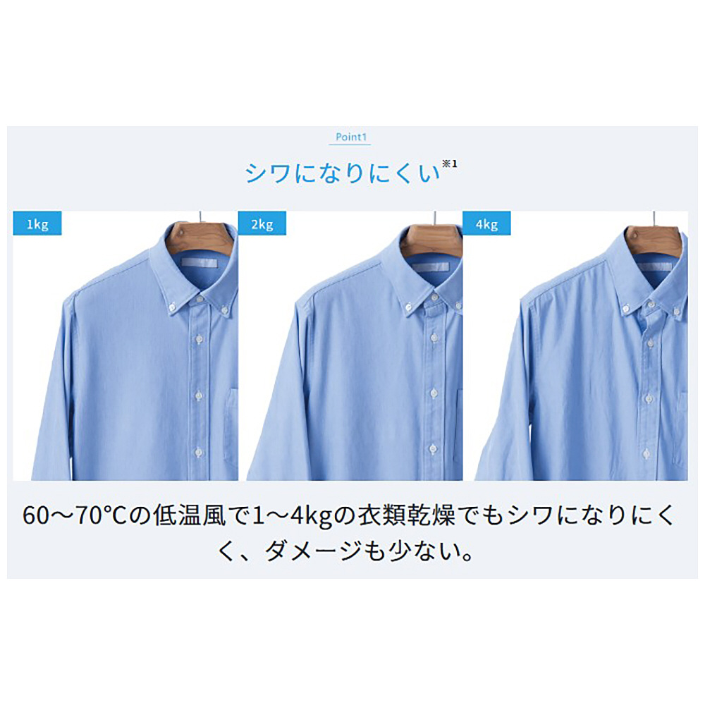 衣類や汚れに合わせた選べる温水で、洗浄効果を引き出す。衣類にやさしい温風温度で乾燥。乾燥フィルターなどのパーツのお手入れも簡単。