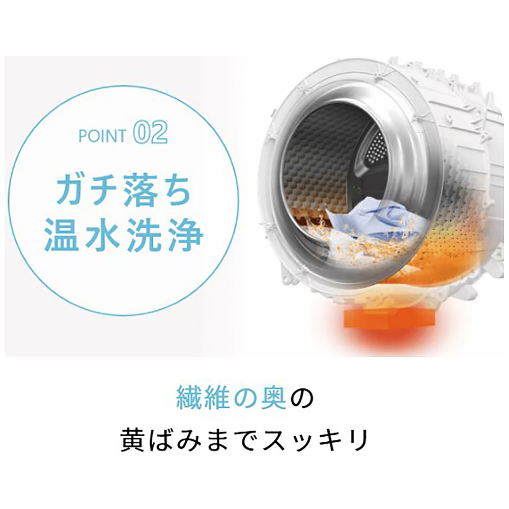 衣類や汚れに合わせた選べる温水で、洗浄効果を引き出す。衣類にやさしい温風温度で乾燥。