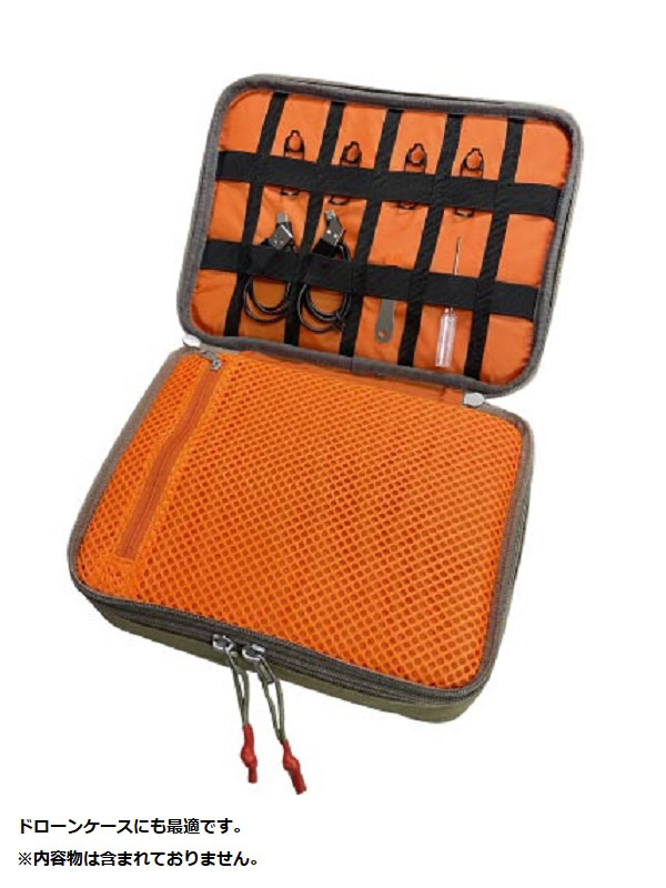 無くしてしまいがちな小型バッテリーや充電コード、アクションカメラなどを便利に収納できるガジェットケース。小型ドローンの収納も可能です。