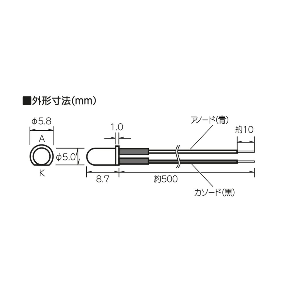 超高輝度コード付LED(青色・5mm) LK-5BL-CRL50