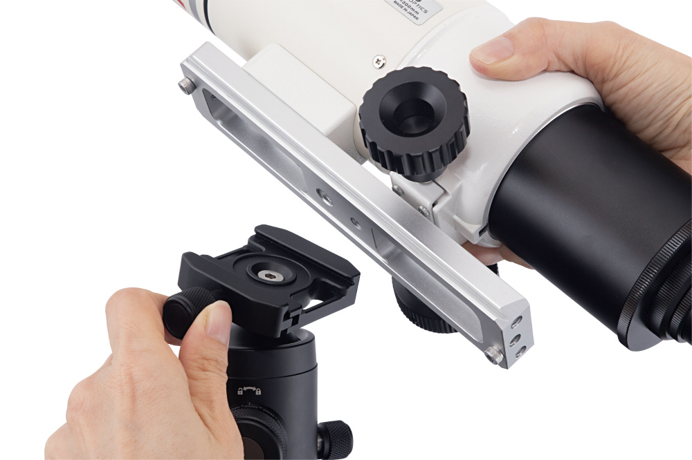 薄型アタッチメントプレート規格・ビクセン規格の両方に対応しているため、赤道儀・経緯台およびカメラ三脚へ簡単に付け替えることができます。