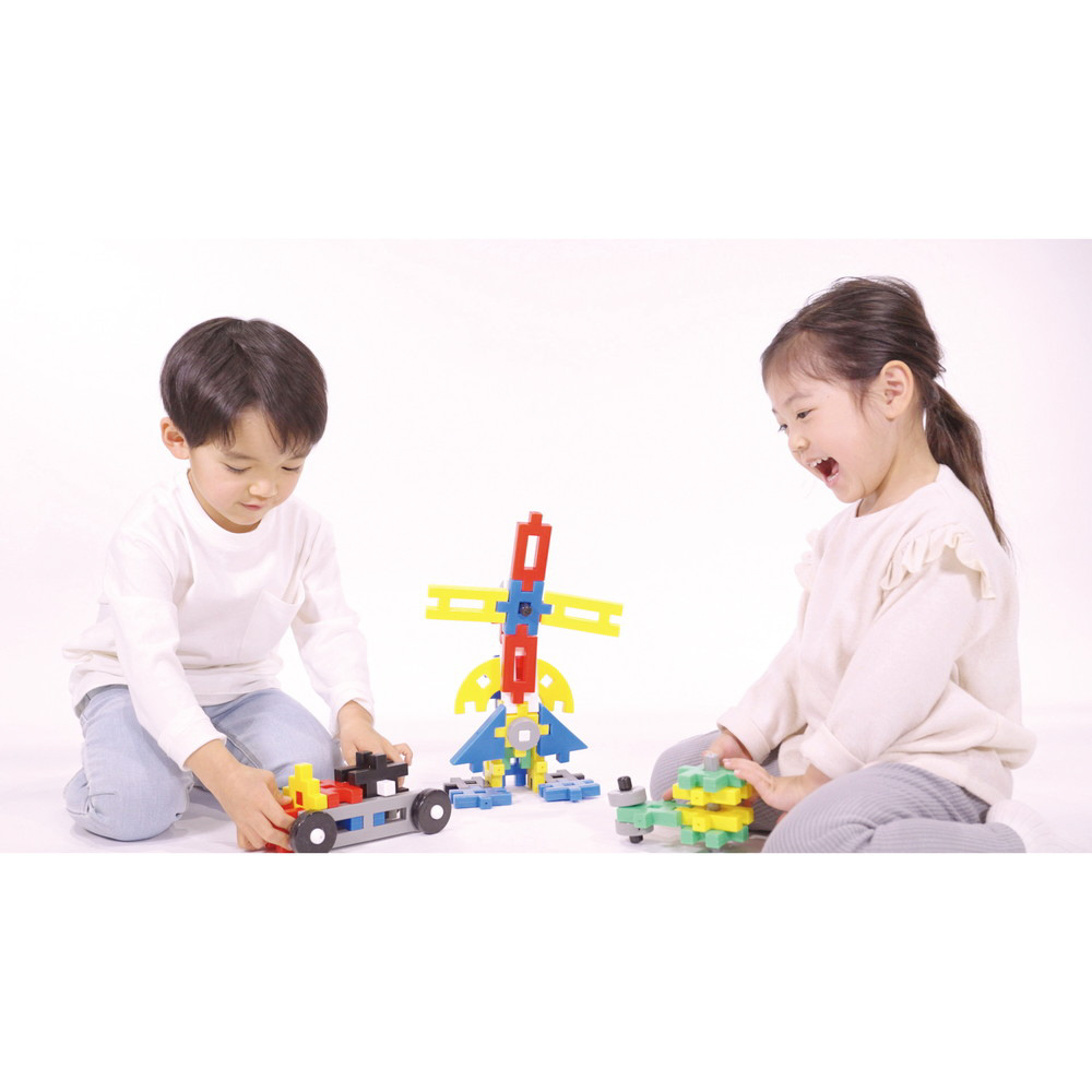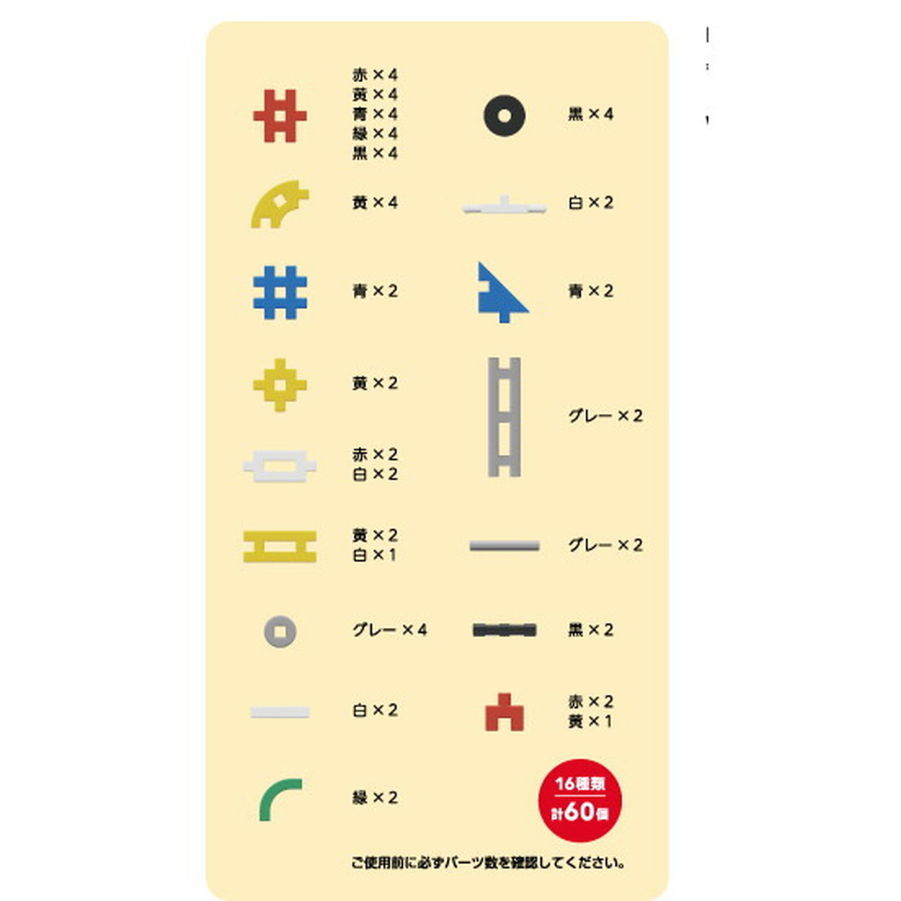 多様な作品が作ることができるベーシックな色と形のパーツが60個入っています。