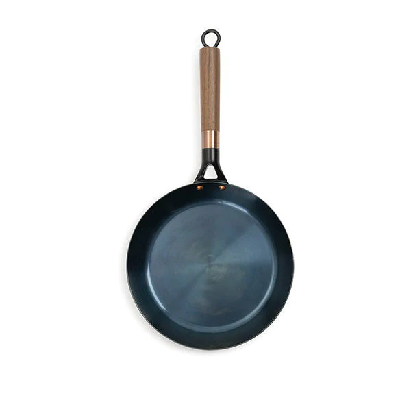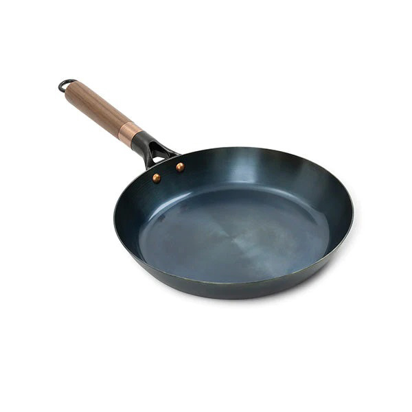 持ち手が長くキッチンからキャンピングや焚き火などでも幅広くご使用いただけます。またキャストアイアンと比べ軽く、早く熱することが出来ますので均等な熱をすばやく食材に伝えることが可能です