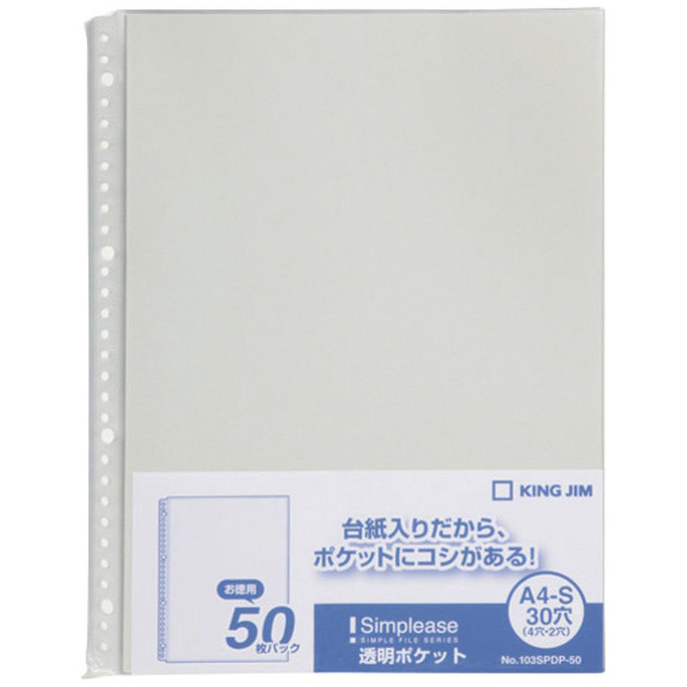 キングジム シンプリ−ズ透明ポケット50P グレ− (50枚入) 103SPDP-50GRAY