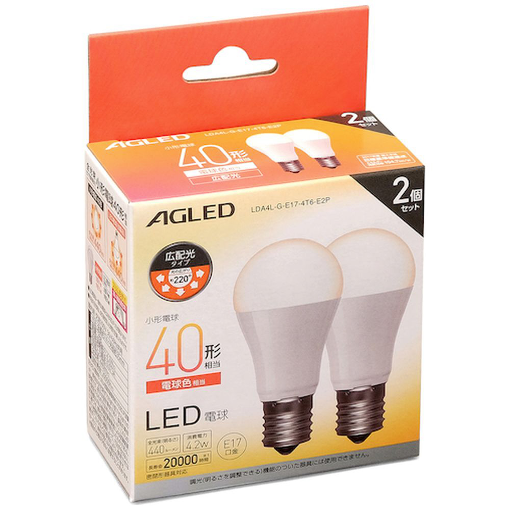 IRIS 522223 LED電球 E17 広配光 40形相当 電球色 2個セット(20000時間) LDA4L-G-E17-4T6-E2P