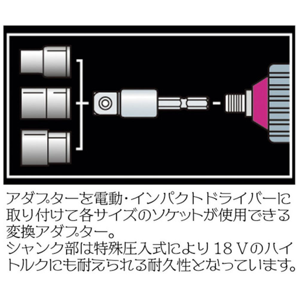 ■電動ドリルにつけて、差込角9.5mmの四角ドライブソケットを使用することが出来る電動・充電・インパクトドライバー用ソケットアダプターです。