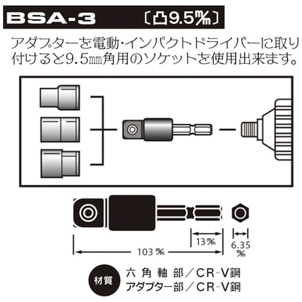 ベストツール BEST 電ドル用ソケットアダプター 9.5 BSA-3