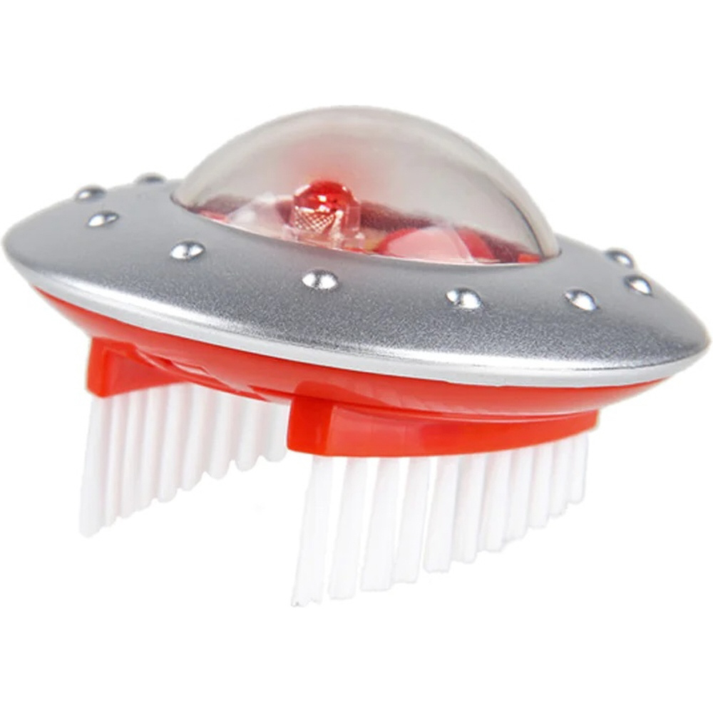 LEDライトが内蔵されているため、光りながら不規則に動き回る様子はまるでUFOのようなユニークおもちゃです。