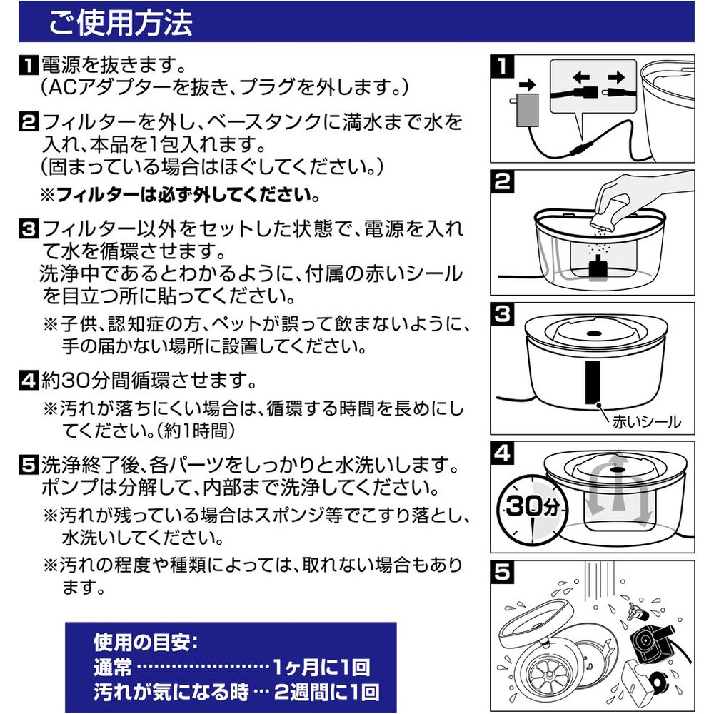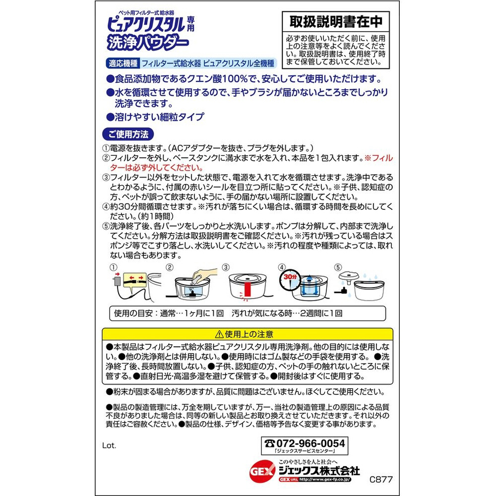 ・ペット用フィルター式給水器「ピュアクリスタル」専用の洗浄パウダーです。