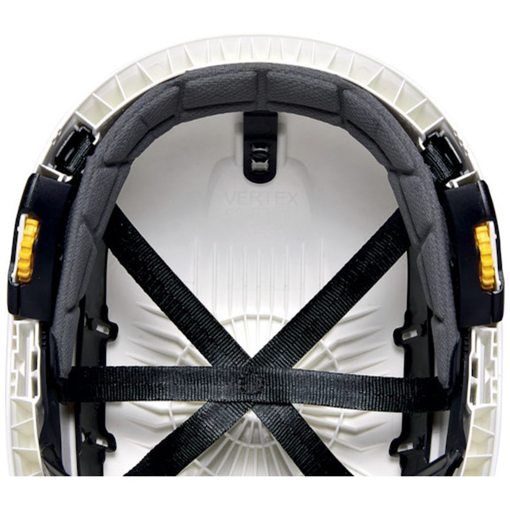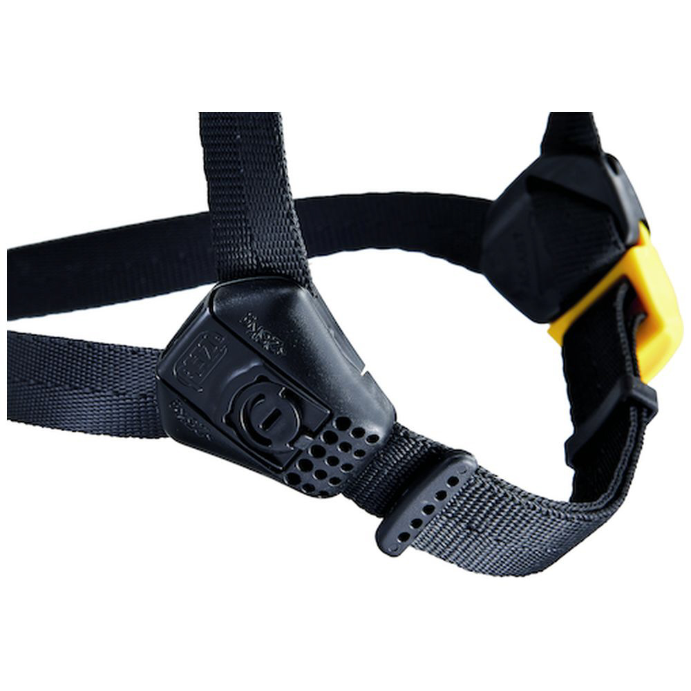 作業環境に応じ、あご紐の強度設定の変更が可能です。( 墜落中にヘルメットを失くすリスクを抑えるための高強度、地上にいてヘルメットが引っかかった場合に頸部が締め付けられるリスクを抑えるための低強度)