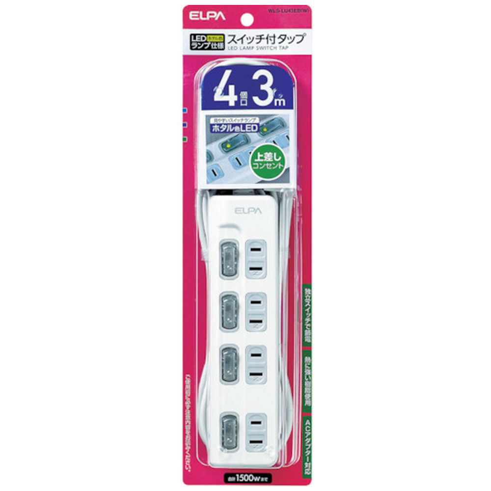 ELPA LEDランプ スイッチ付タップ4P3m上 WLS-LU43EB-W
