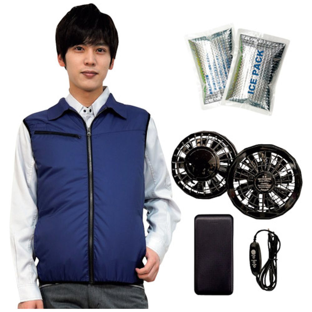 岡潮 冷感保冷剤付き、空調ベスト+モバイルバッテリー付20201 ネイビー S 20201N-S-0920