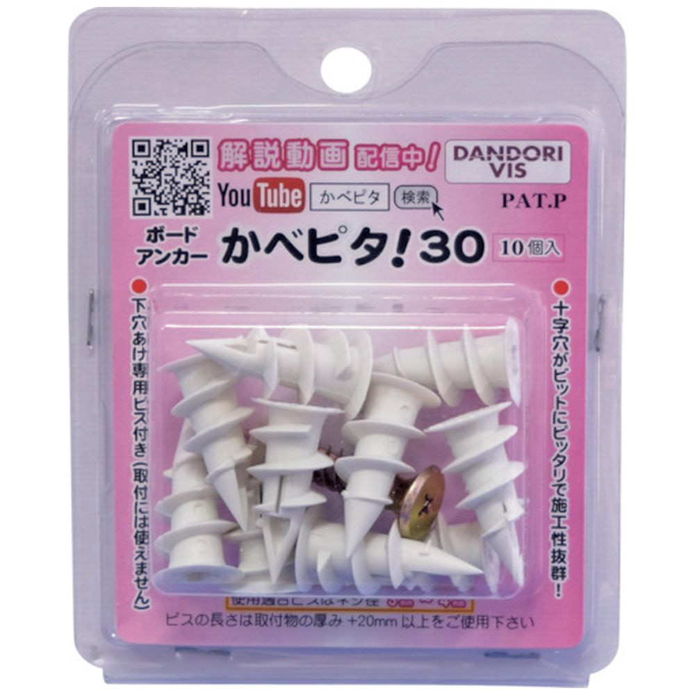 ダンドリビス 石こうボード壁用強力アンカー かべピタ30(10入)ブリスターパック P-KBX30X-10
