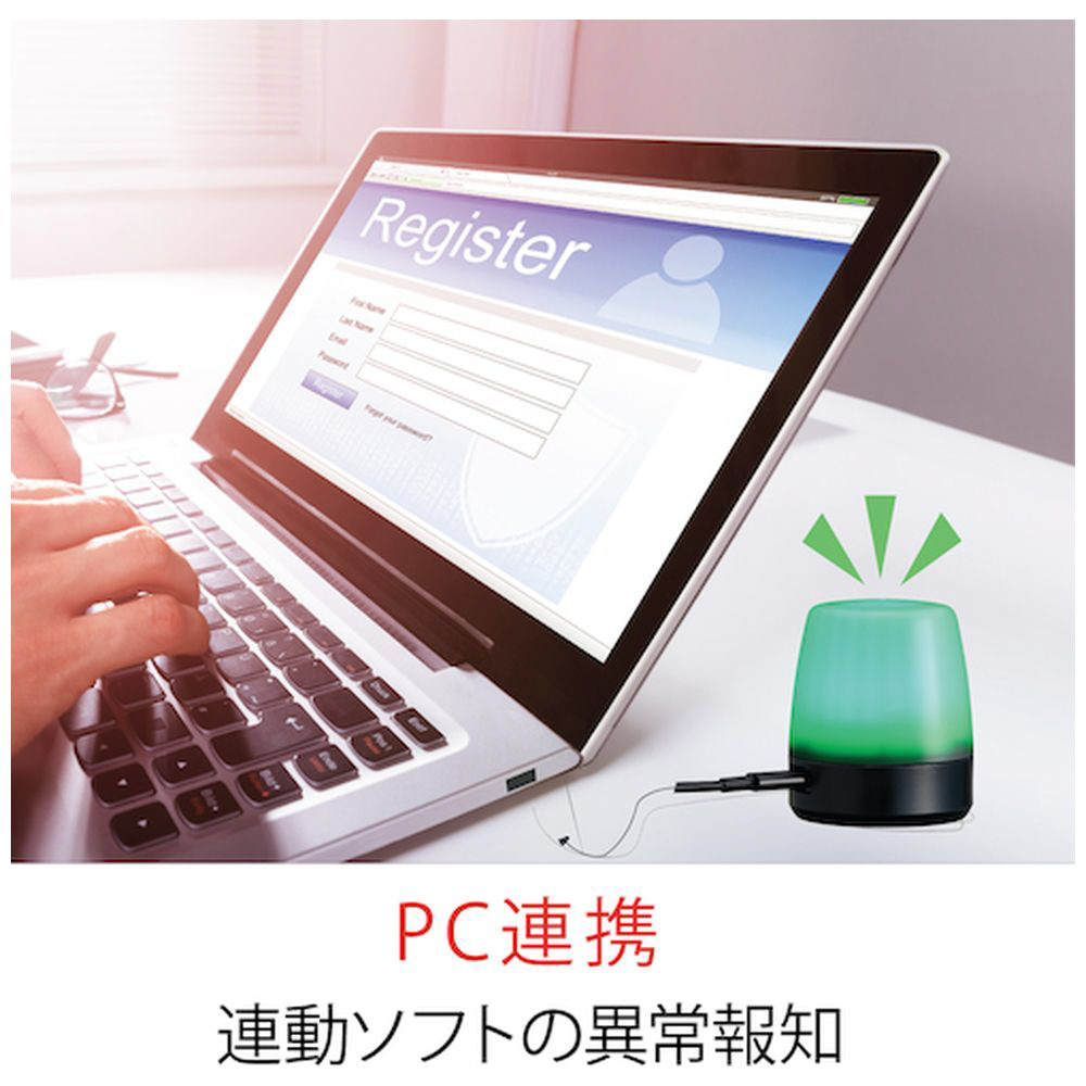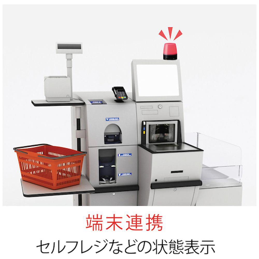 ・セルフレジなどの状態表示、プリンタなど、PC制御装置の状態報知、PCと連携し、連動ソフトの異常報知など。