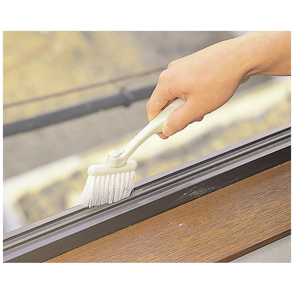 ■汚れがたまりやすいアルミサッシの溝や敷居をブラシちヘラできれいにします。