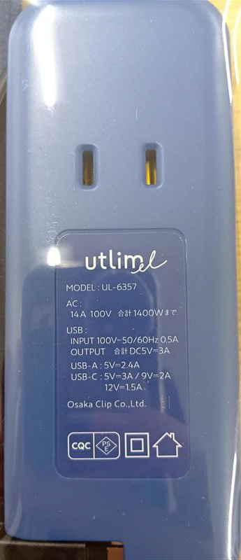 スリム ポータブルコンセント ポーチ付 USB−C ネイビー ネイビー UL-6357-K [0.15m /2個口 /スイッチ無 /2ポート]
