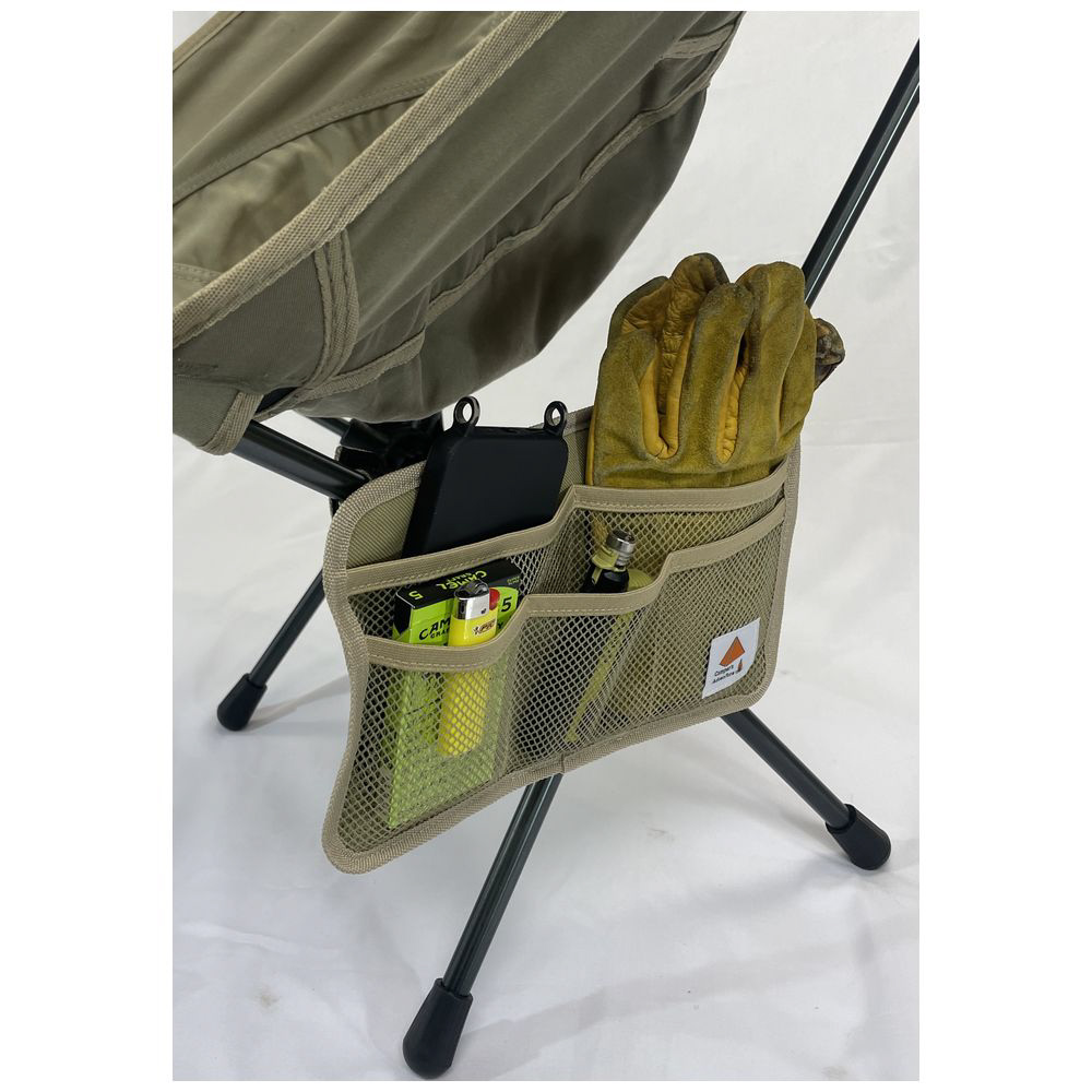 アームの無いチェアの足部分に装着し、収納ポケットとして小物入れに大活躍!