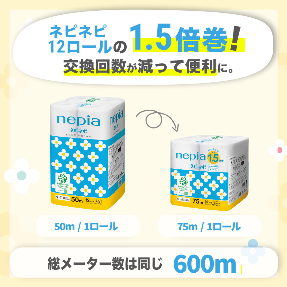 nepia(ネピア)ネピネピ トイレットロール 1.5倍巻[8ロール/シングル/75m]