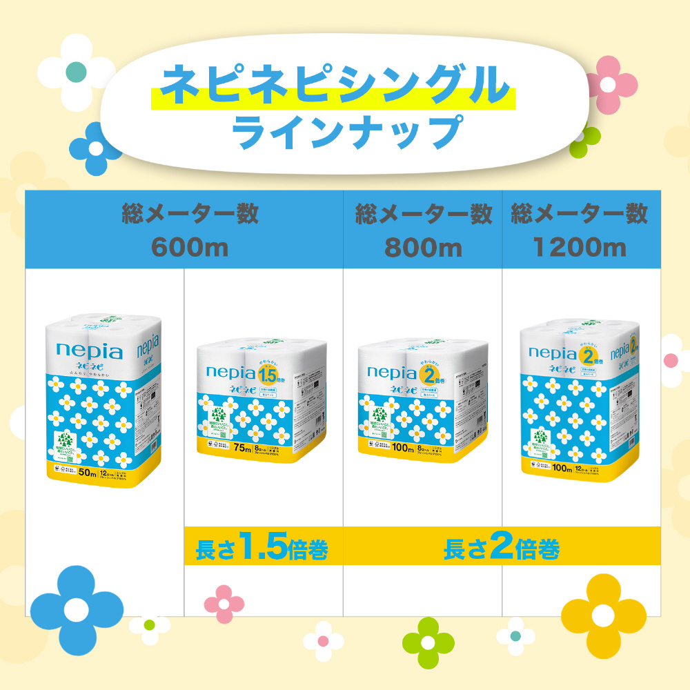 nepia(ネピア)ネピネピ トイレットロール 2倍巻[12ロール/シングル/100m]