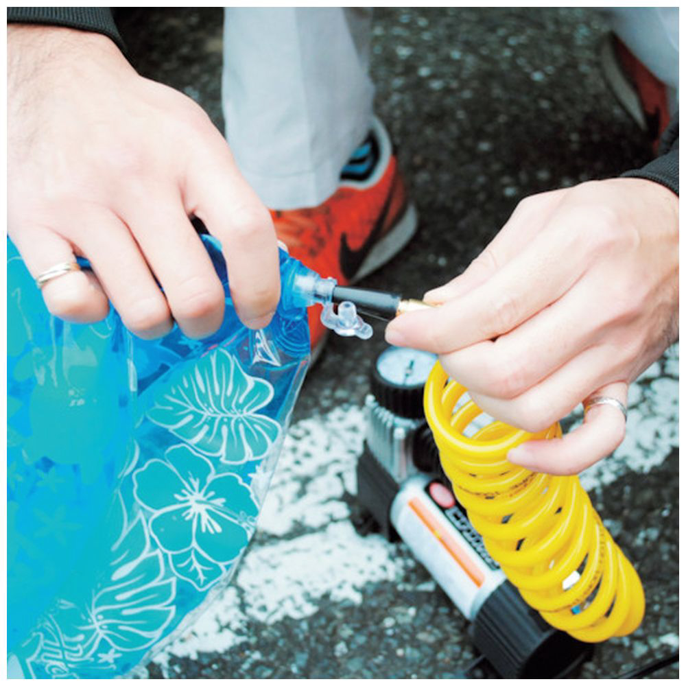 ■ホース先端に取り付ける付属の各種アダプターで、ボールや浮き輪などの空気も充填でき、アウトドアやレジャーでも使用できます。