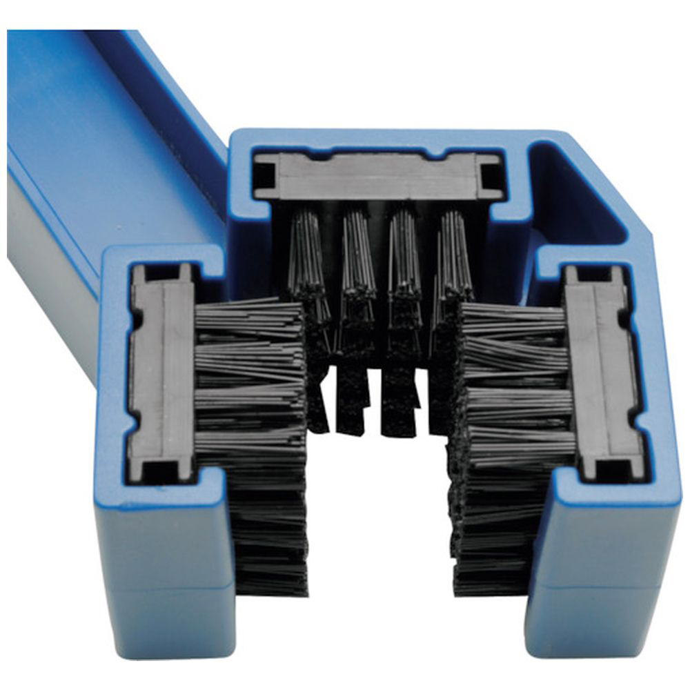 ■チェーンの3面を同時に洗浄でき、ロングブラシを使えば、フロントスプロケット周りなどに飛び散った汚れの清掃に役立ちます。