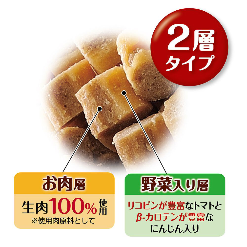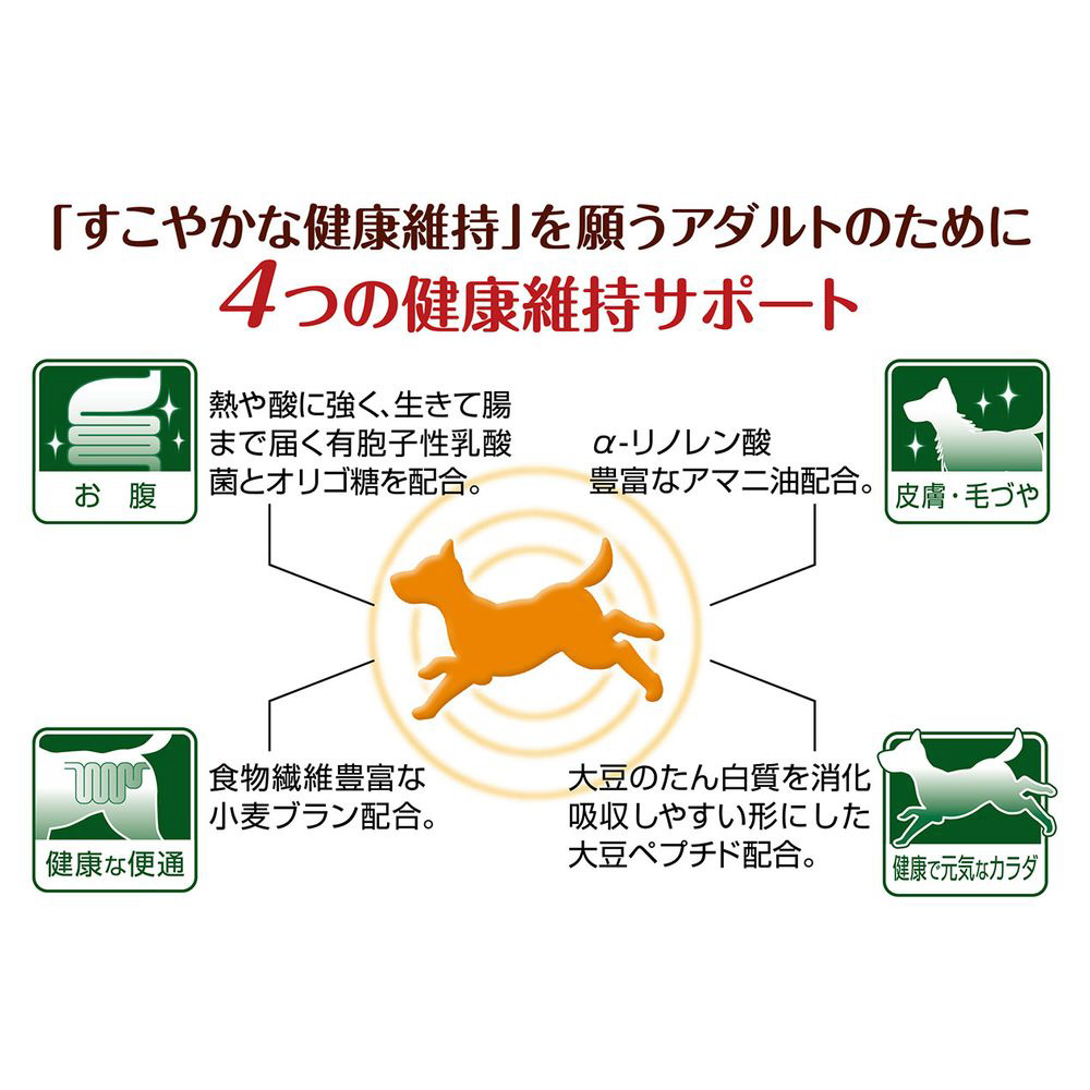 「すこやかな健康維持」を願うアダルトのために4つ(お腹、皮膚・毛づや、健康な便通、健康で元気なカラダ)の健康維持サポート。やわらかセミモイストタイプ、食いつきバツグン!生の馬肉と野菜を使った2層タイプ。小袋タイプでお試しにも最適!