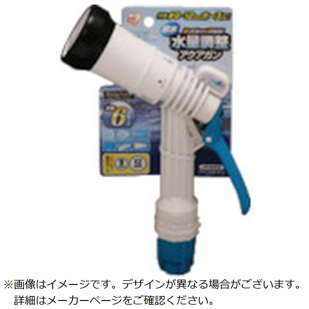 適合ホース内径9〜12mmの水量調整アクアガンです。小型ヘッドを採用しました。後レバータイプで、レバーの握り加減で水量調節ができます。水流は6パターンです(キリ・ジェット・シャワー・ジョーロ・カクサン・ストップ)。グリップエンド部分にねじれ防止キャップを採用しているので、ホースがねじれません。
