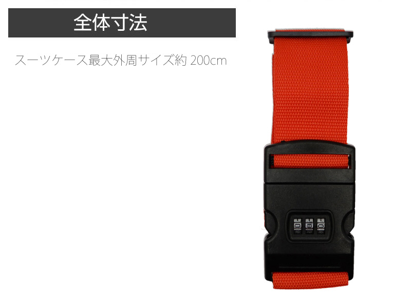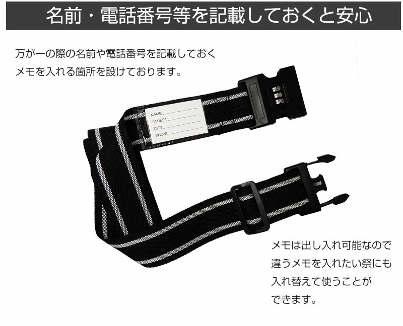ダイヤルロック付きスーツケースベルト 3ダイヤル ブラック LG-STCS-BLT-BK