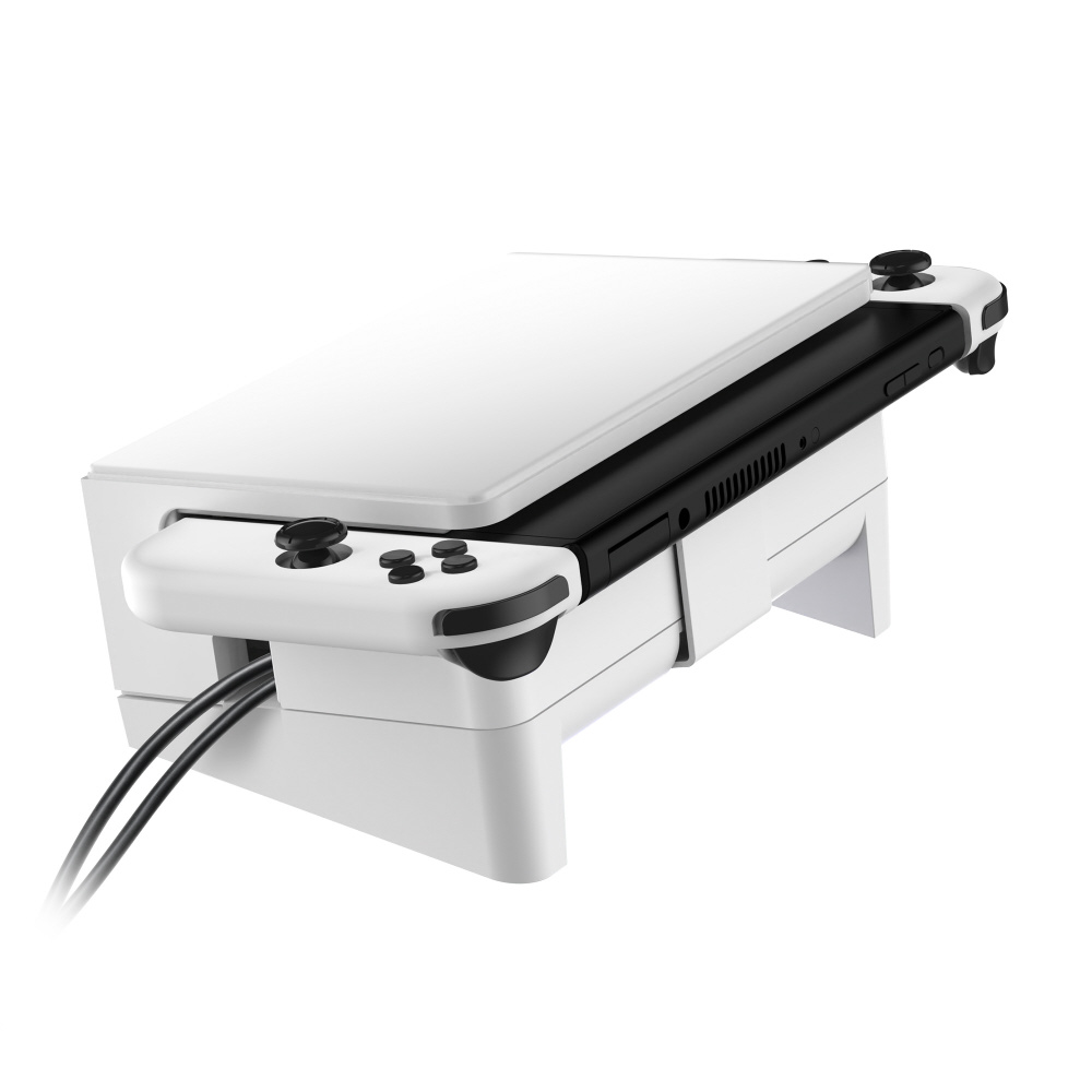 ●Switch用ドックを横置きし、テレビ台の中などの狭い場所でも設置ができる傾斜スタンドです。