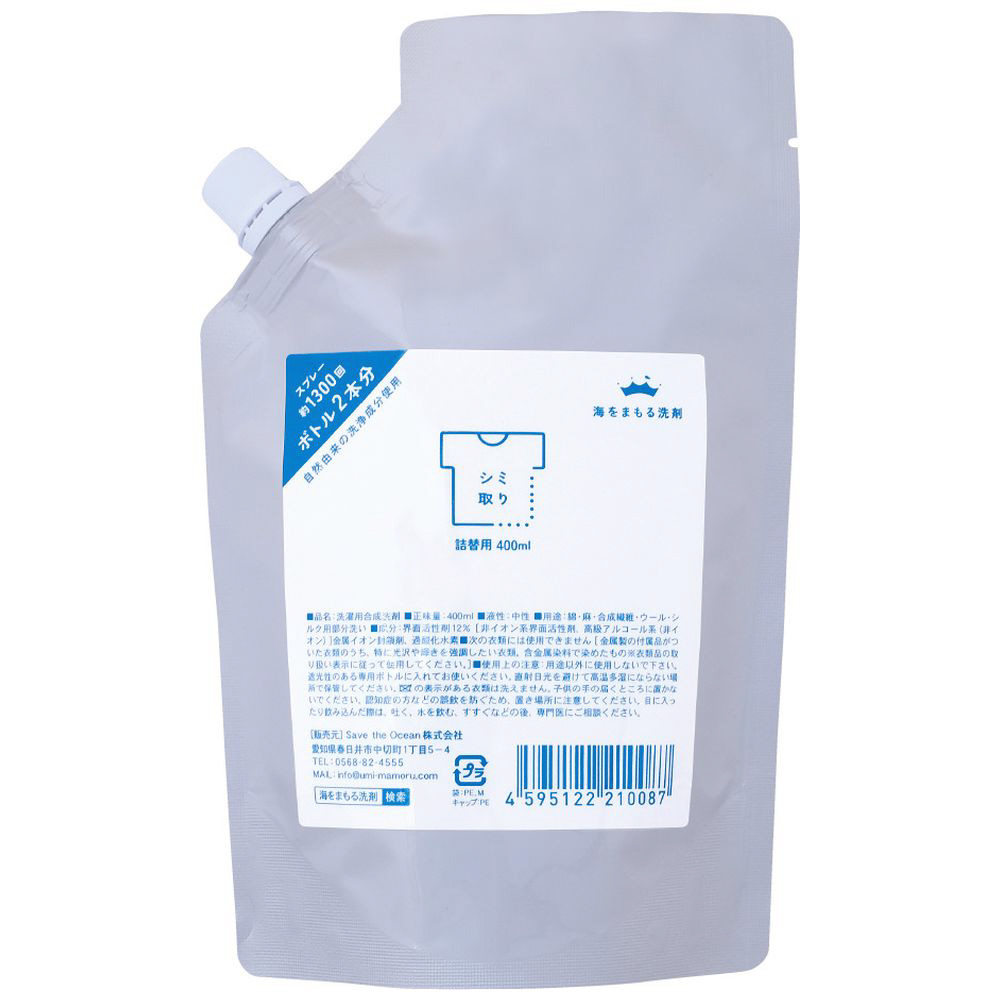 海をまもる洗剤 シミ取りスプレー 詰替えパウチ 400ml