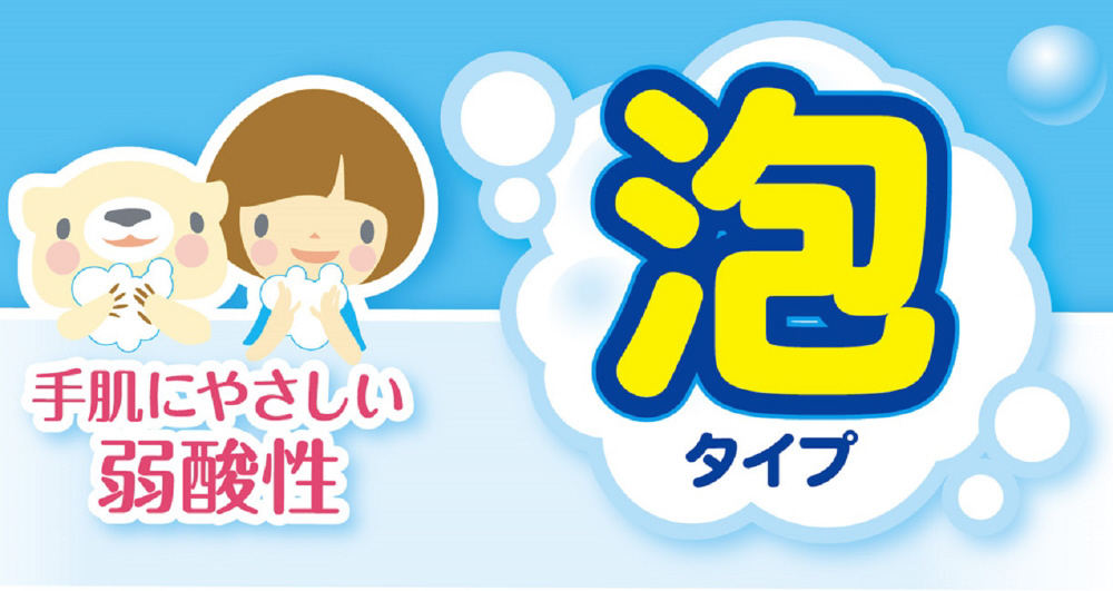殺菌成分配合の泡で出てくるハンドソープ。弱酸性の泡が手肌のうるおいを守りながらやさしく洗いあげます。