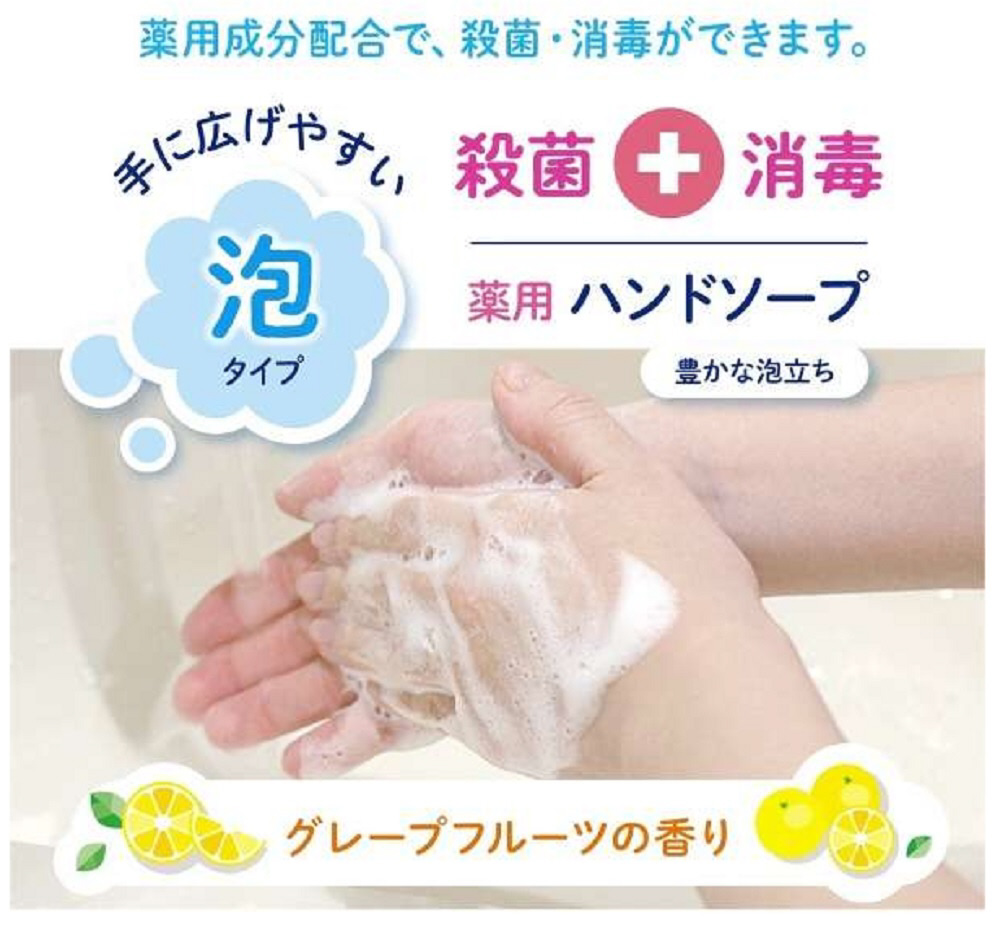 殺菌成分配合の泡で出てくるハンドソープ。グレープフルーツの香りつき