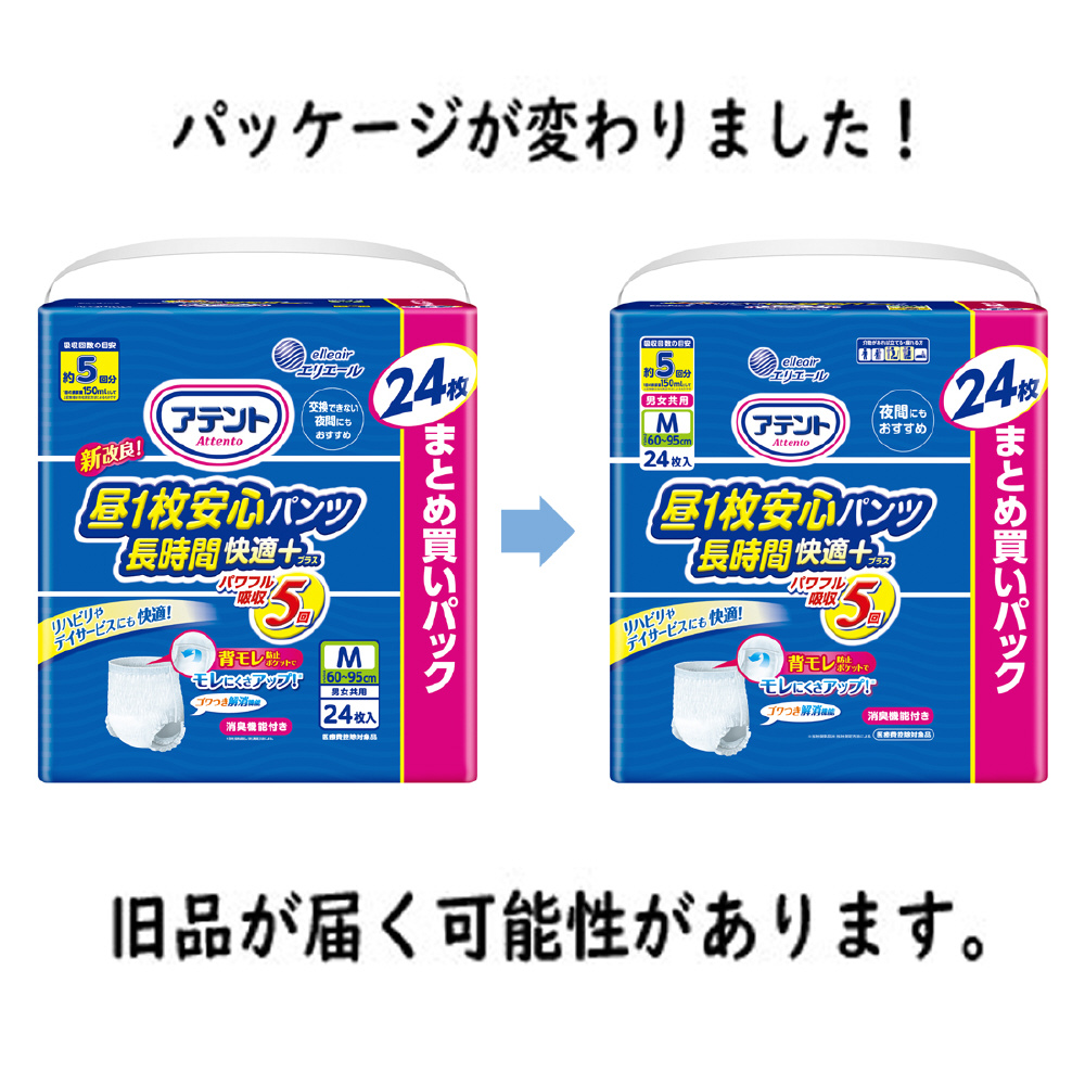 アテント 昼1枚安心パンツ 長時間快適プラス Mサイズ 男女共用 24枚入