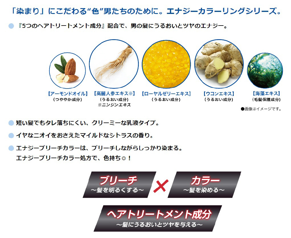 尖って生きろ「染まり」にこだわる色男たちのためのエナジーカラーリングシリーズ。ブリーチしながら染めるから、しっかり発色