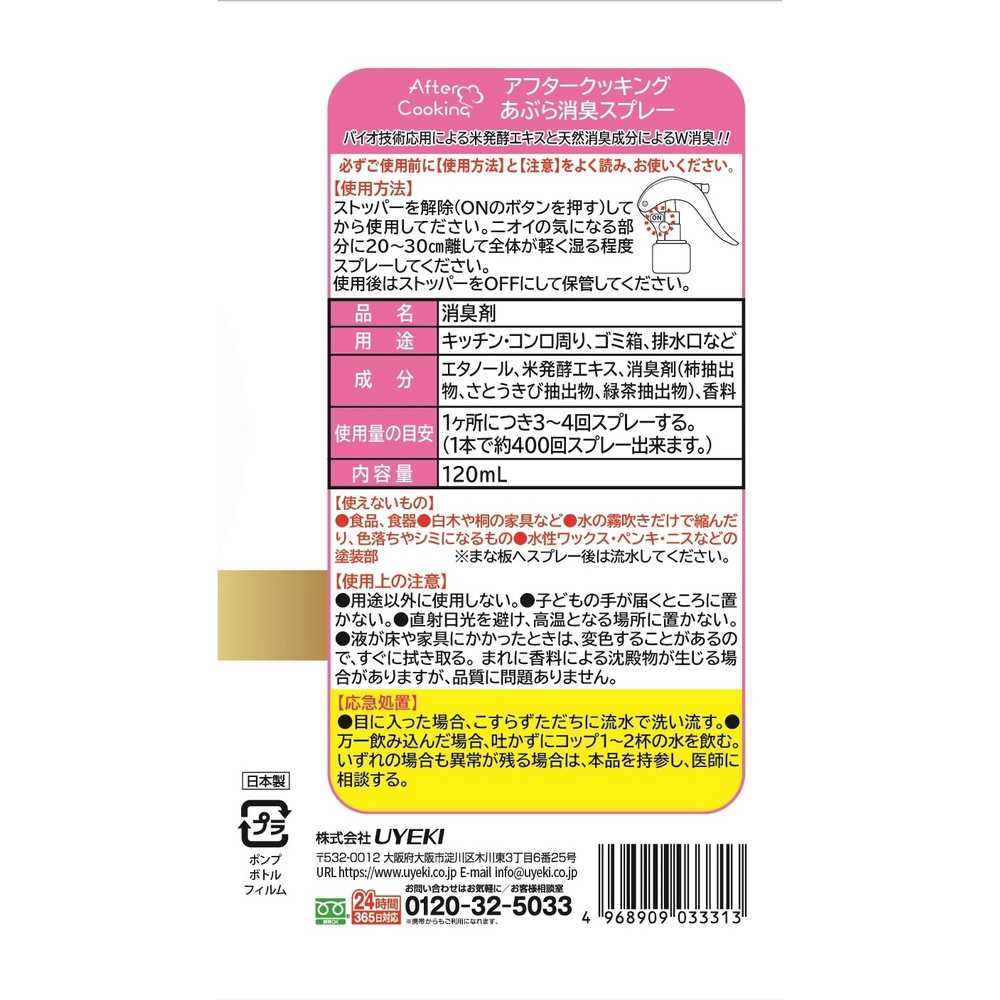 アフタークッキング あぶら消臭スプレー 120mL