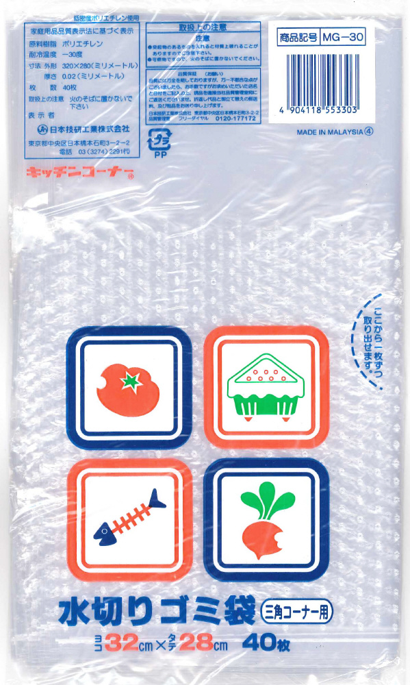 キッチンコーナー 水切りゴミ袋三角コーナー用MG−30 40枚