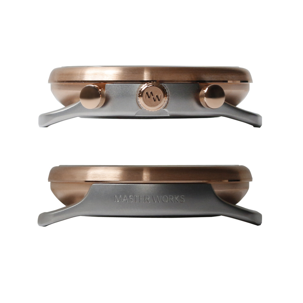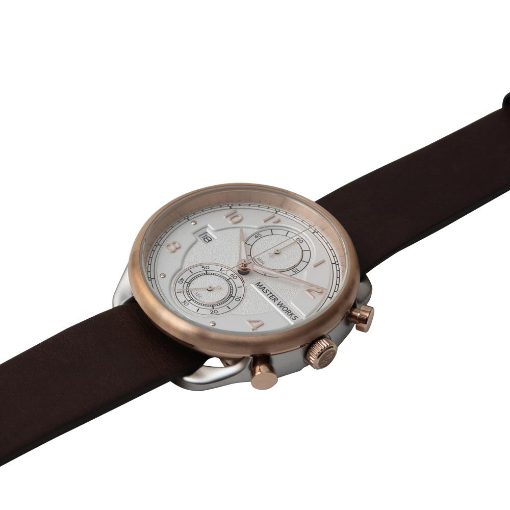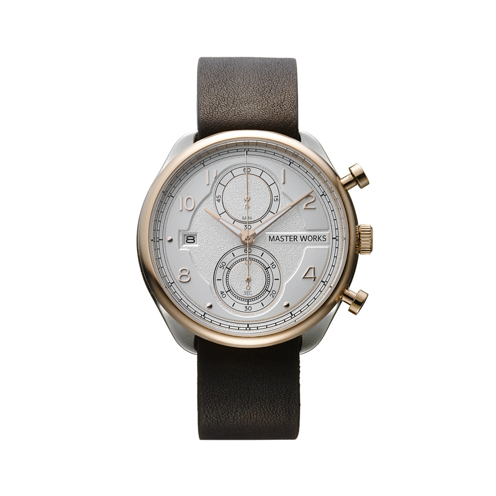 クロノグラフ(ストップウォッチ)機能を搭載したモデル。デザインと機能美が融合したスタイリッシュな外観。