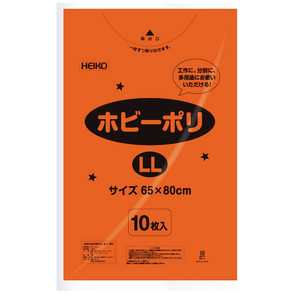HEIKO カラーポリ袋 ホビーポリ LL 橙 10枚入り 006799620