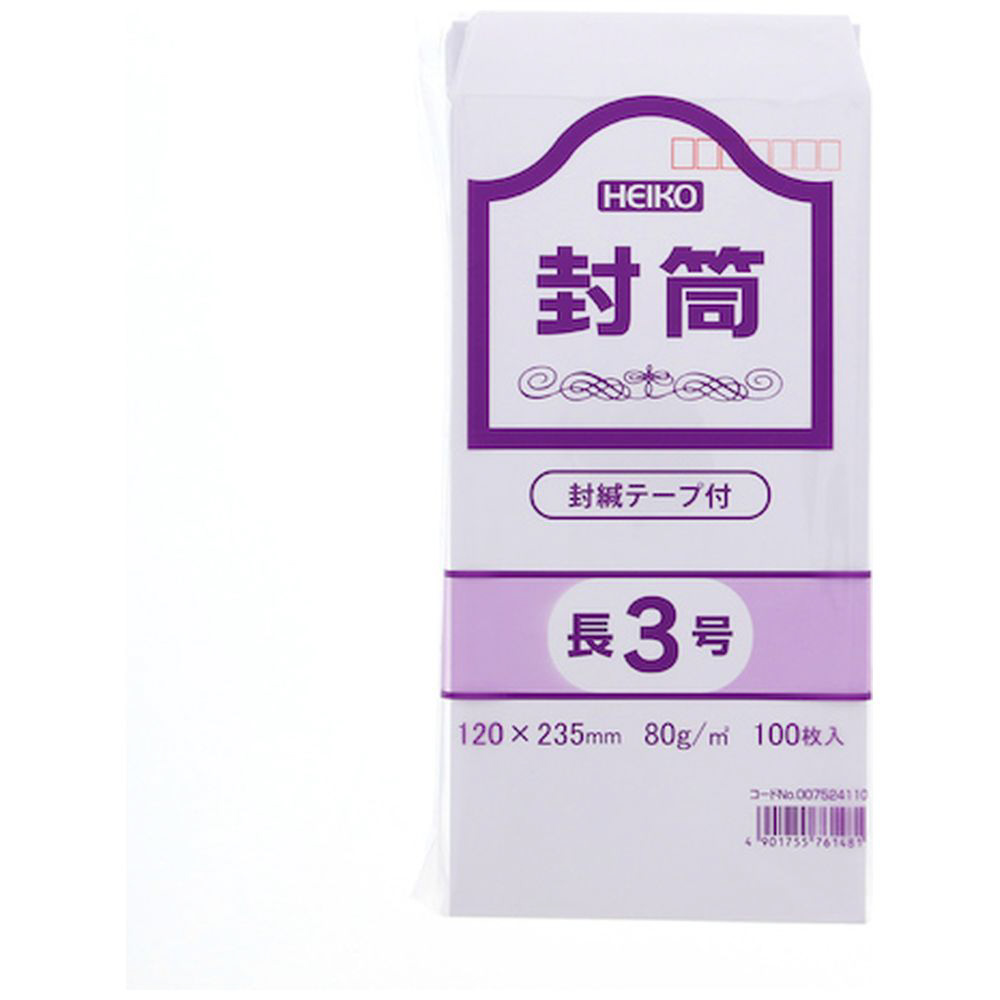 HEIKO 事務用ケント封筒 長3 80g テープ付 郵便番号枠あり 100枚入り 007524110