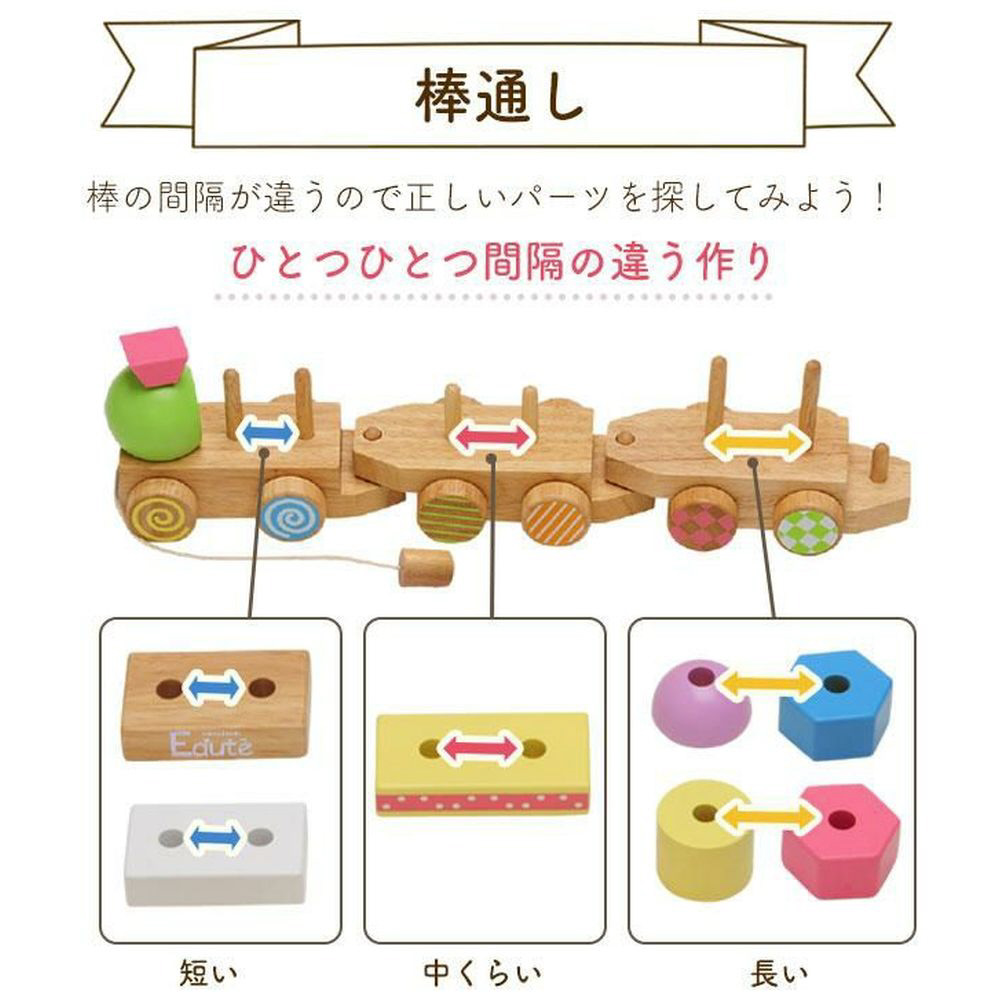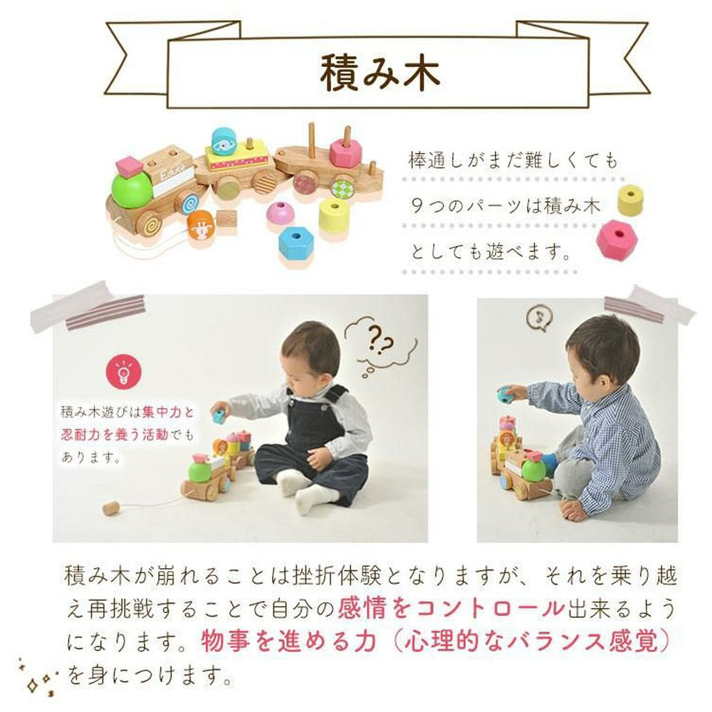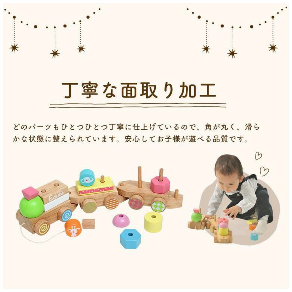 荷台のブロックは積木、棒通し、カタチ分けなど知育な遊びも楽しめ、長くお遊びいただけます。
