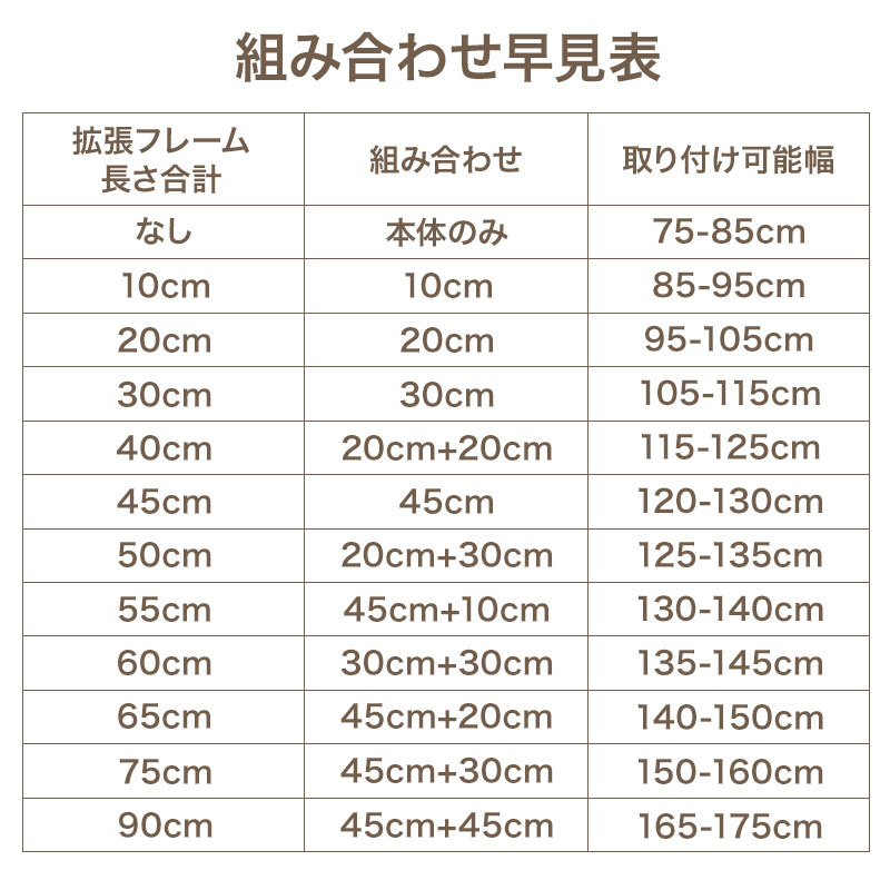 ●拡張フレームをつけると最大175cmまで取り付けが可能となります。