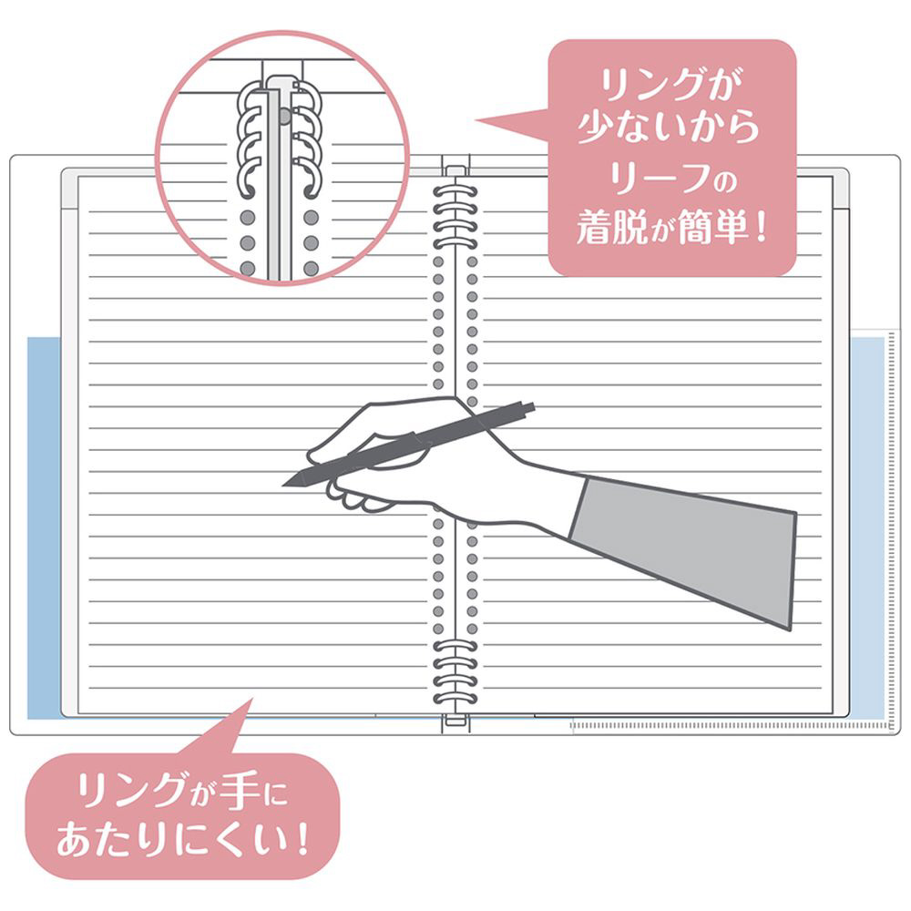 携帯に便利なスリムタイプのバインダーで、ポケットが二つ付いています。8穴リングですが、20穴にも対応しています。