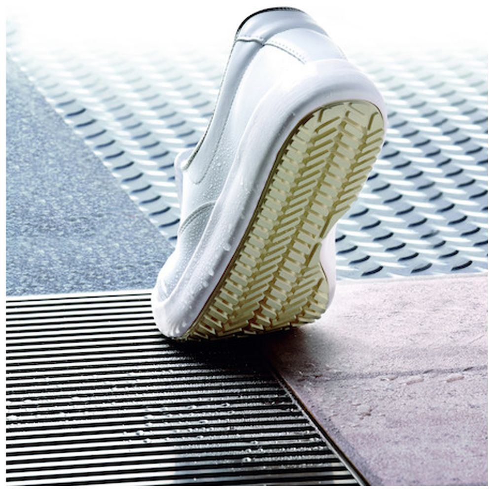 ■グレーチングのような硬い金属面や凹凸のあるタイル等、様々な床材で耐滑性能を発揮します。