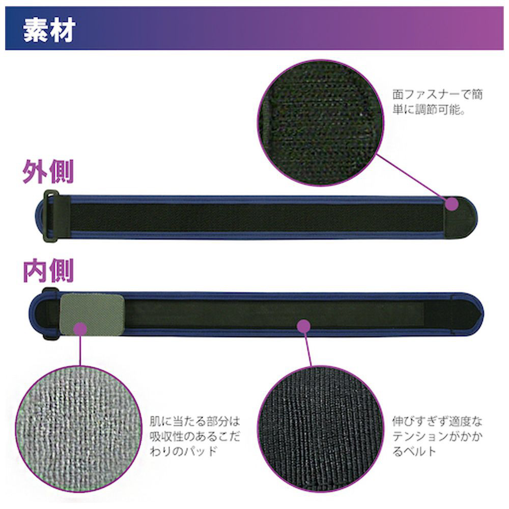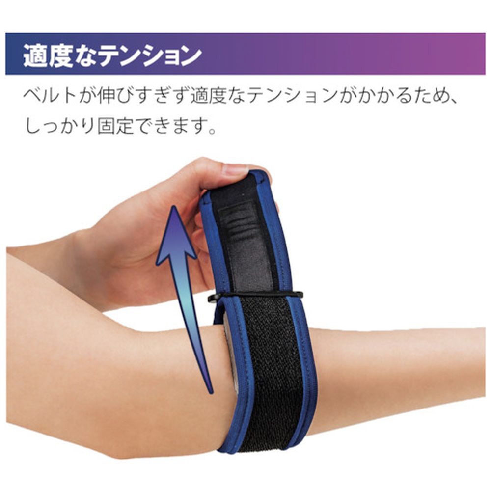 肘に違和感を感じたときに、バンド(パッド付)1本で肘への衝撃をブロック、前腕の動きを抑えることで肘への負担を軽減します。