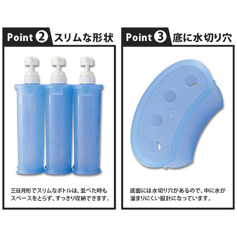 詰替用の袋ごとスッポリ収まるシャンプーなどの詰替に便利なディスペンサーです。
