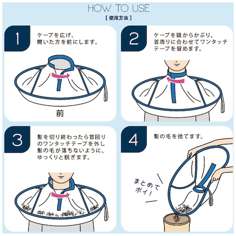 ■帯電防止加工で髪の毛が飛び散りにくく、後片付けもラクラクです。