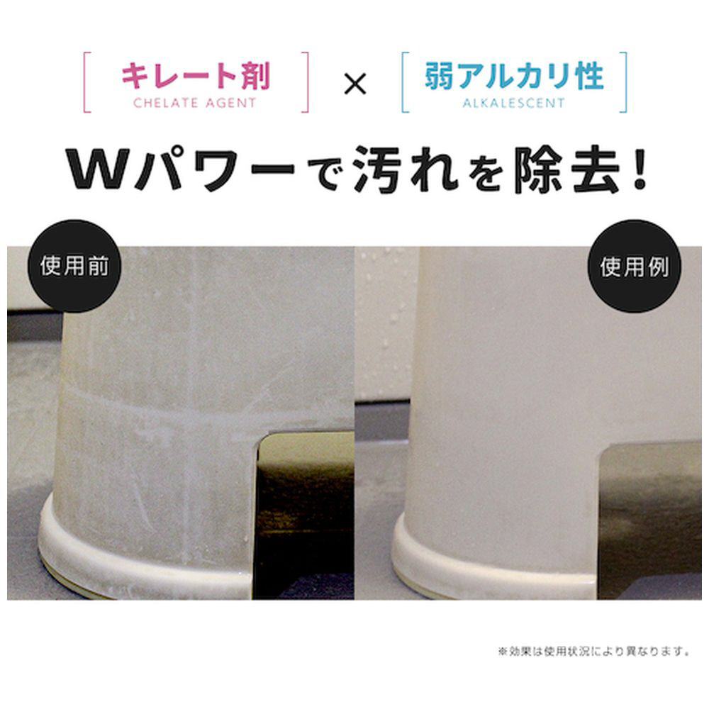 ■キレート剤が働き、蓄積された頑固な浴室汚れを除去(※キレート剤=金属イオン封鎖剤)します。