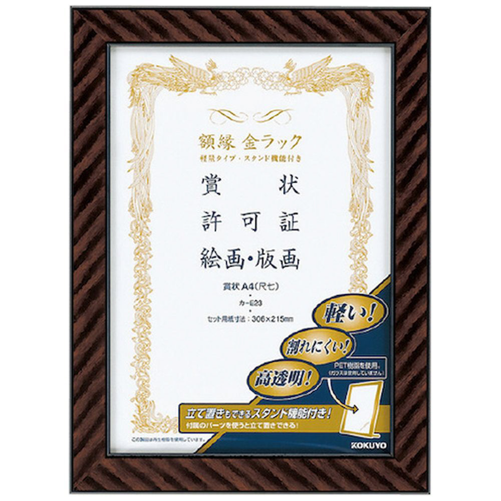 コクヨ 額縁<金ラック>軽量タイプ・スタンド付き 賞状 A4(尺七) カ−E23 54669451