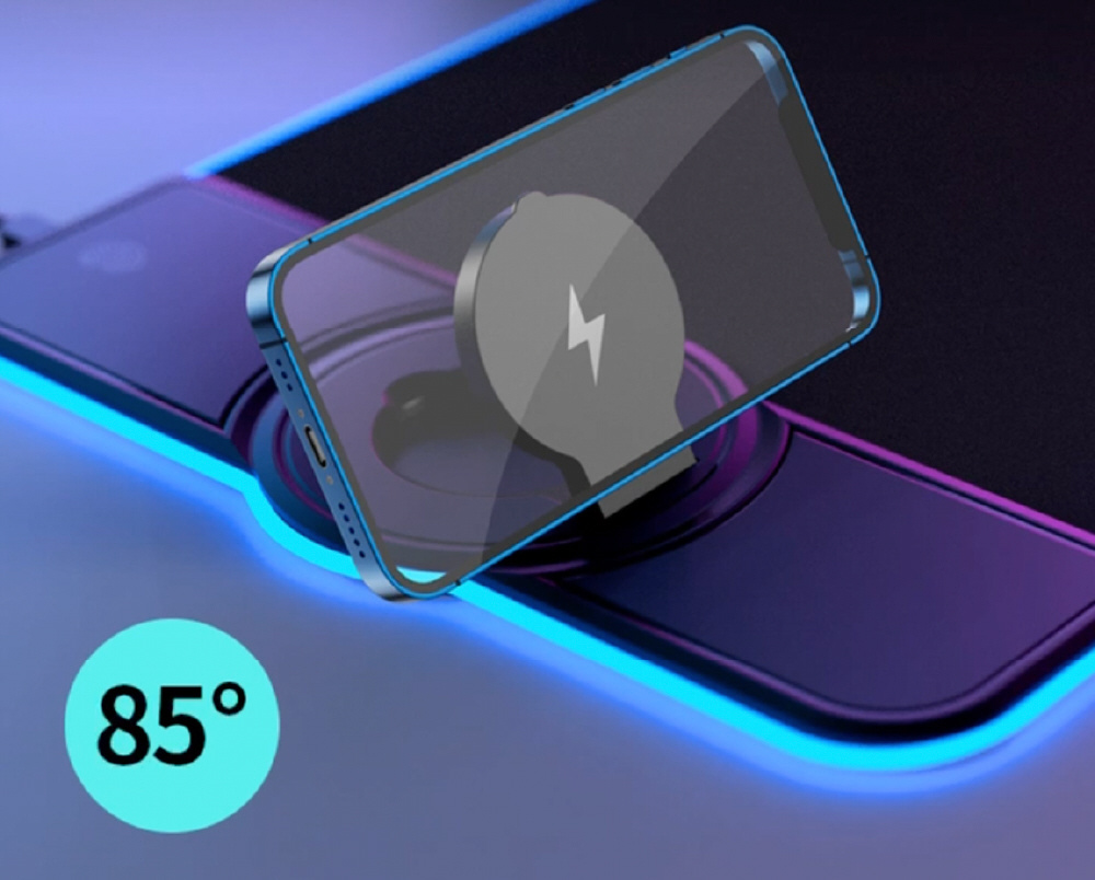 GeeMousepadは、LEDライトの美しい演出だけでなく、ワイヤレス充電のスマートフォンやガジェットを充電することができます。
