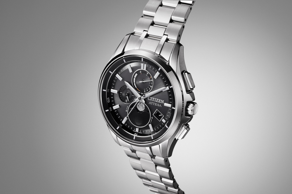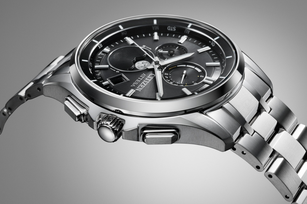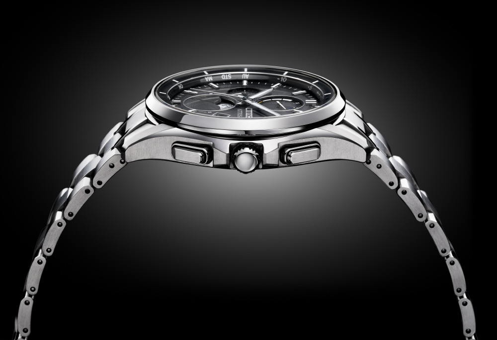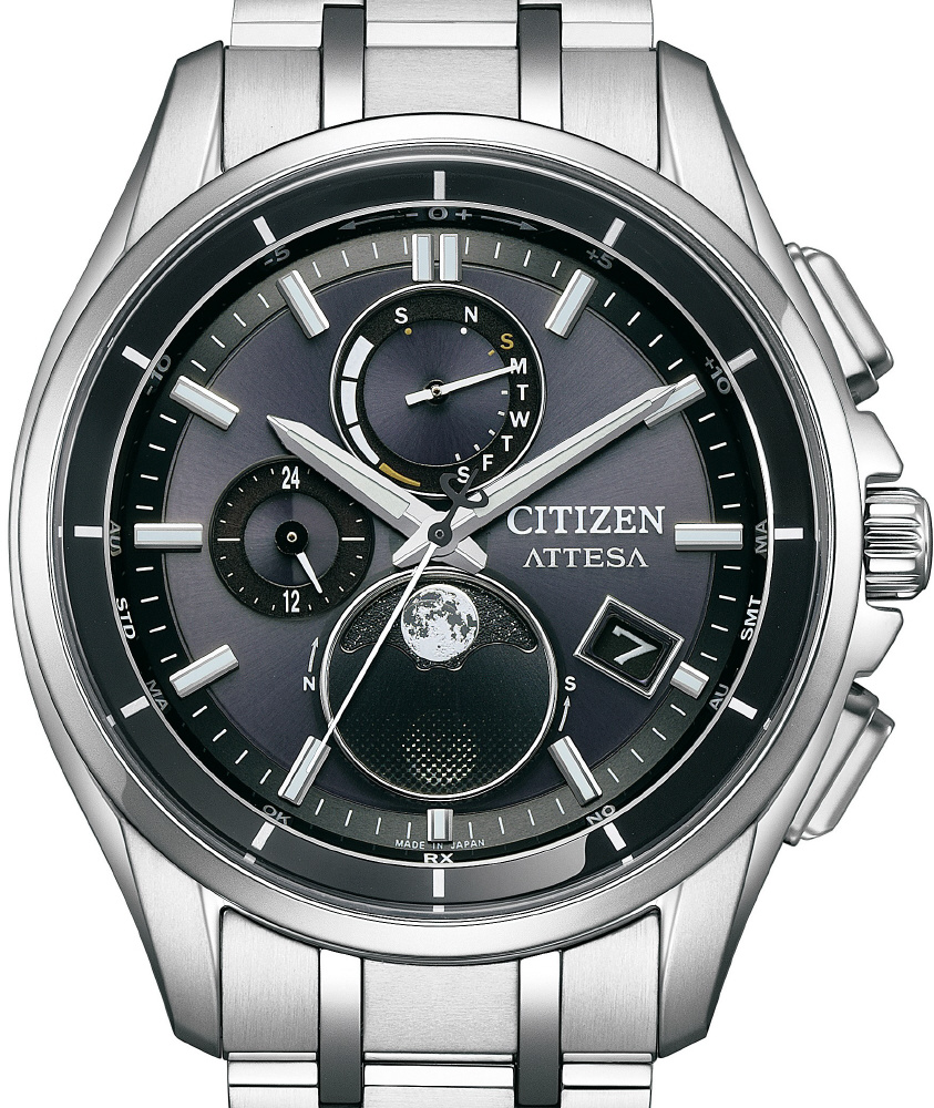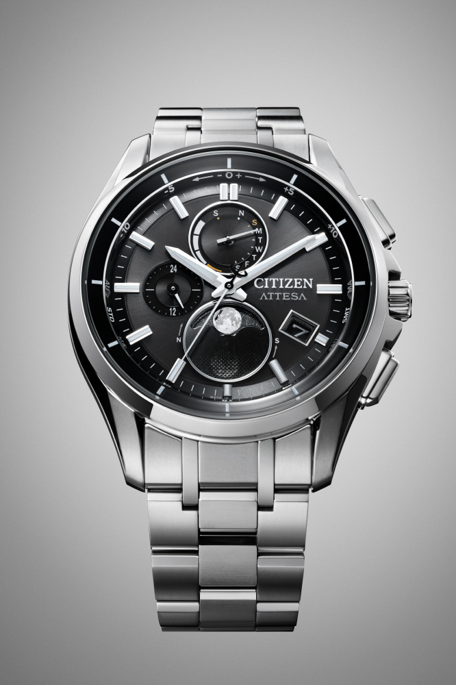 チタニウムで次世代を進み続ける、シチズン ATTESA(アテッサ)。アナログ式光発電腕時計で世界初の月齢自動計算機能「ルナプログラム」を搭載した新モデルがデビュー。モダンなムーンフェイズが、エレガントな印象をより際立たせています。